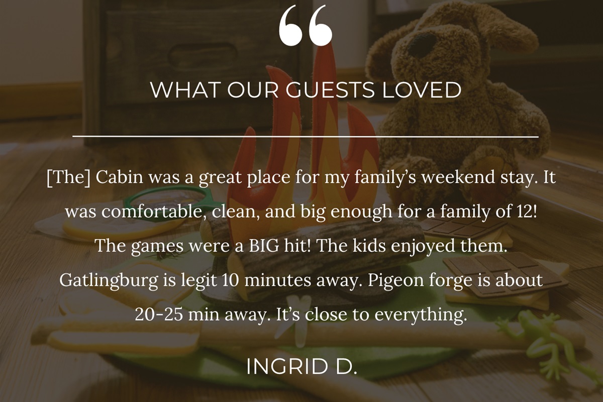 We really tried to make this cabin a place you'll enjoy throughout your stay. Every item included here was so that you can focus on creating memories with the family and leaving the annoying details to us. :)