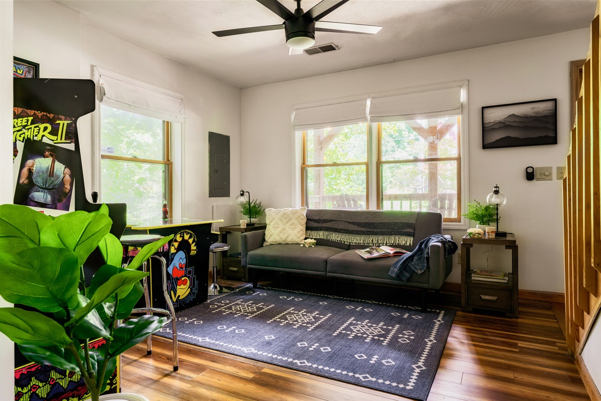 ▻ Game Room with 2-player PacMan and Street Fighter Arcades